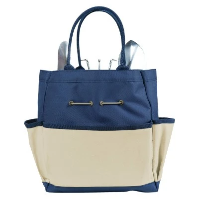 - ESSENTIAL GARDEN TOOLS – the Picnic Time Garden Tote includes three assorted hand gardening tools with wooden handles including 1 broad face trowel, 1 narrow face trowel, and 1 cultivator/hand rake