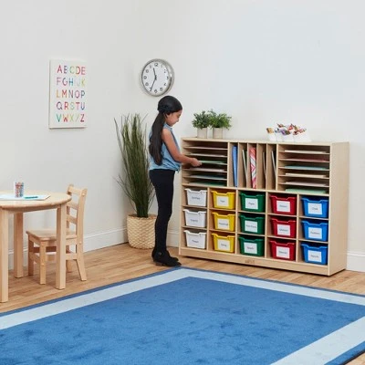 The Birch Multi-Section Storage Cabinet with 15 Scoop Front Bins is a favorite for classroom, home, and office organization! Birch veneered wood cabinets keep toys, art supplies, and games neatly organized and stored away when not in use. The thin shelves for papers and folders and 15-cubbies is great for classrooms to store individual students’ items during the day. Built out of durable veneered birch wood and sturdy hardware. Birch wood is strong, rot resistant, free of knots and has a clean, contemporary look. Easily wipe clean with a mild soap and water solution or with your favorite bleach-free wipe. Our furniture is GREENGUARD [GOLD] Certified for low VOCs and contributes healthier indoor air, TSCA, CARB Phase 2, Lacey Act and CPSIA-compliant; made with non-toxic, lead-free materials. At ECR4Kids, we’re committed to safety, testing and regulatory compliance to ensure our products meet or exceed industry standards. You and your kids deserve the absolute best for a brighter way to play, share, learn and grow.