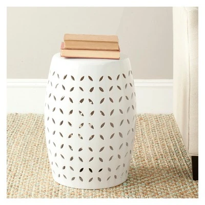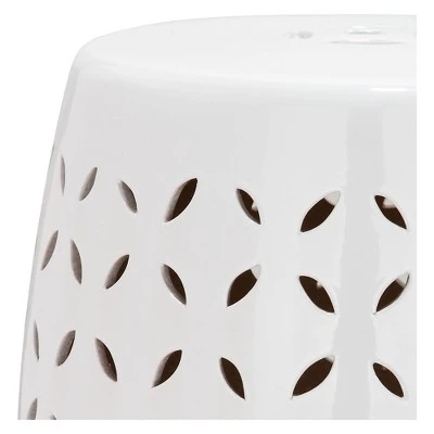 Embellished with a lattice pattern of stylized flower petal cut-outs, this sophisticated garden stool is crafted of ceramic and finished with a pure white glaze. Use as a handy side table, or place several in a cluster for drama indoors or out. Optional to use in the garden or any indoor room as a spare seat, side table or plant stand. The Lattice Petal Garden Stool is an ideal choice for Contemporary or Transitional style setting. This garden stool can support up to 195 lbs. No assembly required.