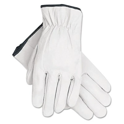 Industrial and warehouse work gloves for many applications. Memphis Gloves X-Large driver’s gloves in white color are made of premium grade goatskin leather for enhanced durability. Gloves with slip-on cuff feature shirred elastic back, color-coded hem and are ideal for industrial work. Premium grain goatskin leather driver’s gloves with slip-on cuff. 12 Pairs. Exceptional durability. Greater softness for sense of touch. Excellent tensile strength. Shirred elastic back. Straight Thumb. Color-coded hem to identify size. Drivers gloves. Goatskin leather. Cuff Leather, slip-on – open. 9.75″(H) x 4.55″(W) x 3.9″(D). Application: Carpentry, construction, driving, equipment operation, farming, horseback riding, landscaping, tractor trailer operators, fork lift operations. Lining: Unlined. Thread type: Poly/cotton. CE: 2 abrasion. Palm: Leather, leather type: White, goat. Includes Memphis glove X-large unlined grain kid driv 127-3601XL / 300006-887. CE approval. Weight: 2.097 lbs. Sold as 1 Dozen.