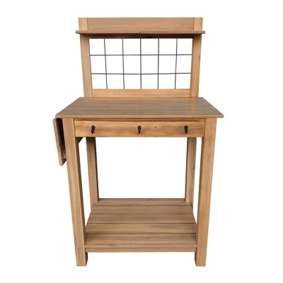 Exercise your green thumb by performing a wide variety of gardening tasks on this outdoor potting bench. A welcome addition to your garden, deck, or shed, the potting bench provides a spacious top and a drop-leaf, so you can prepare pots, window boxes, and cut flowers for arrangements. A slatted shelf provides ample room to hold pots, potting soils, and other gardening essentials, and the solid Acacia Wood construction is weather-resistant to help the bench stand up to the elements and maintain its beauty for years to come.