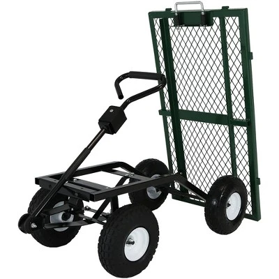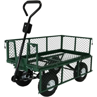 With a 660-pound hauling capacity, the options are endless when it comes to moving large items with Sunnydaze Steel Dump Utility Garden Cart. The multi-use wagon sides can be folded down or completely removed by pulling out the side pins, creating a useful flatbed cart. The convenient u-shaped quick-release hook located on the bottom of the frame makes unloading a quick and effortless process. The 70″ collapsible wagon is made from durable steel mesh materials with a powder-coated finish making this product weather-resistant and long-lasting. The large D-shaped padded handle allows the utility cart to be towed or pulled by hand.