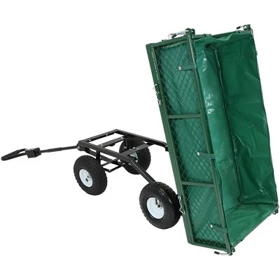Sunnydaze Decor Sunnydaze Outdoor Lawn and Garden Heavy-Duty Steel Dump Cart with Removable Sides and Weather-Resistant Polyester Liner – Green