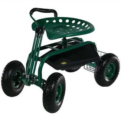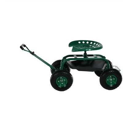 Sunnydaze Decor Sunnydaze Outdoor Lawn and Garden Heavy-Duty Steel Rolling Gardening Cart with Extendable Steer Handle, Swivel Chair, and Basket – Green
