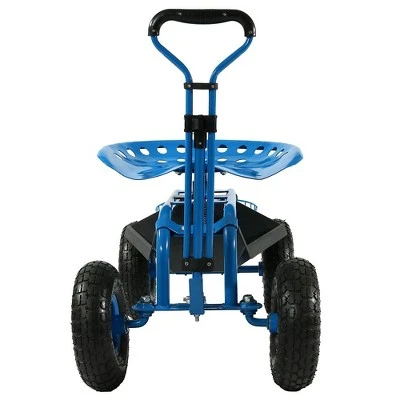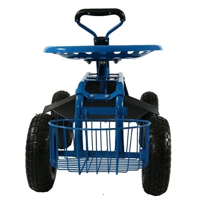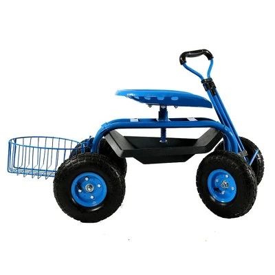 - Rolling seat garden yard landscape cart with tool basket, tray and pull handle