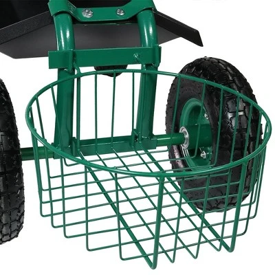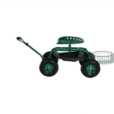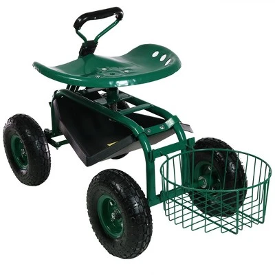 - Rolling seat garden yard landscape cart with tool basket, tray and pull handle