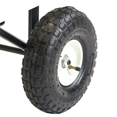 - Pneumatic 10″ diameter x 3″ W tires and heavy-duty reinforced axles