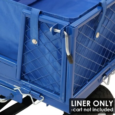 Make gardening and landscaping projects less of a hassle with this new heavy-duty steel utility cart liner. When carrying smaller material or dirt, this liner helps to keep items inside the utility wagon, leaving more time to finish the project and less time cleaning up! The weather-resistant liner is made from durable 600D polyester material so it is sure to last through many seasons of use in any landscape. Also features snaps on each side for a secure and perfect fit on a garden cart (not included, sold separately).